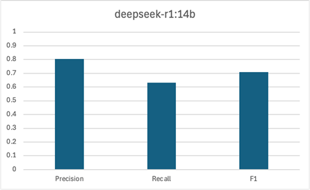 We can see that deepseek-r1’s performance was roughly in line with gemma3’s performance from earlier, with an F1 score of roughly 0.7.